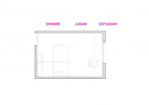 Al igual que en un dormitorio normal, en un dormitorio infantil existen numerosos usos que comparten espacio. Normalmente son 4: